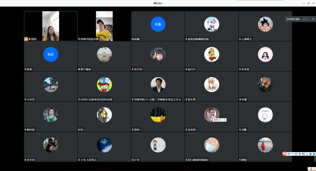 6月23日下午4:30,澳门十大信誉网赌大全通过腾讯会议召开2019-2020学年第二学期期末考试工作会。会议由教学秘书郜扬主持,全体监考教师、考试课任课教师和各班班主任参加会议。