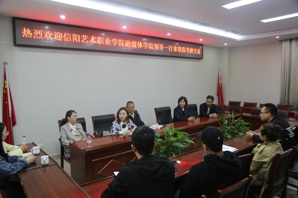 10月6日,信阳艺术职业学院融媒体学院(筹)党委书记刘士俊、院长汪玥一行来十大信誉网赌考察交流。十大信誉网赌播音主持系负责人张杰、副主任张衡等在会议室与来宾进行了座谈。田华副院长出席座谈会。
