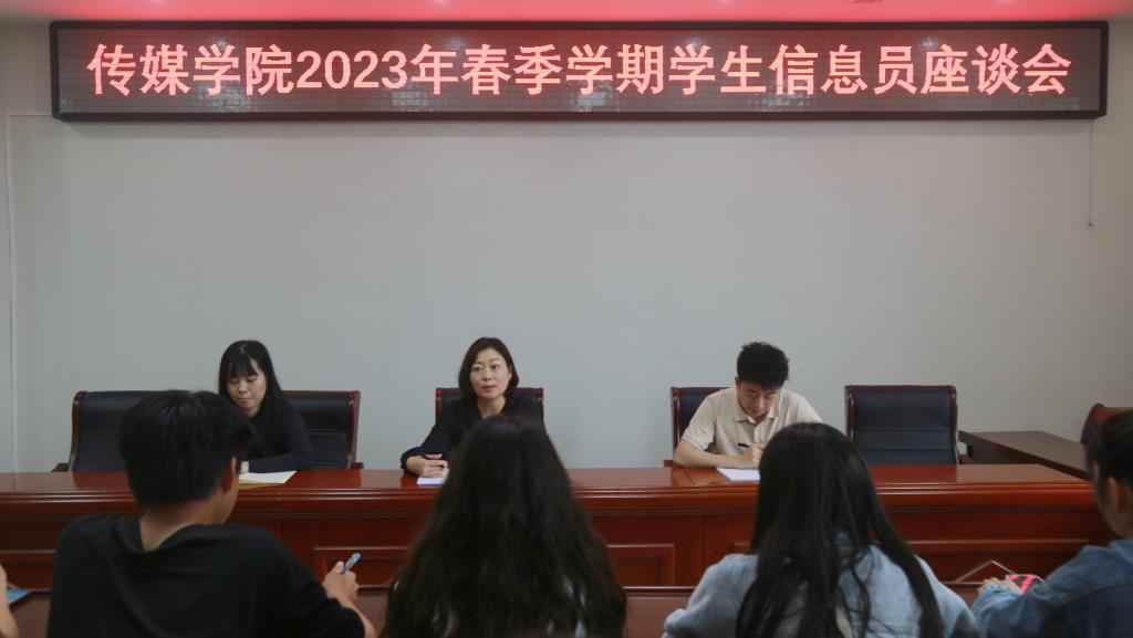 为了解师生教学情况,进一步提高教学质量,5月30日下午,澳门十大信誉网赌大全召开2023年春季学期学生信息员座谈会。副院长田华,教学办公室张延鑫、牛小童,各年级学生信息员参加会议,会议由教学秘书张延鑫主持。