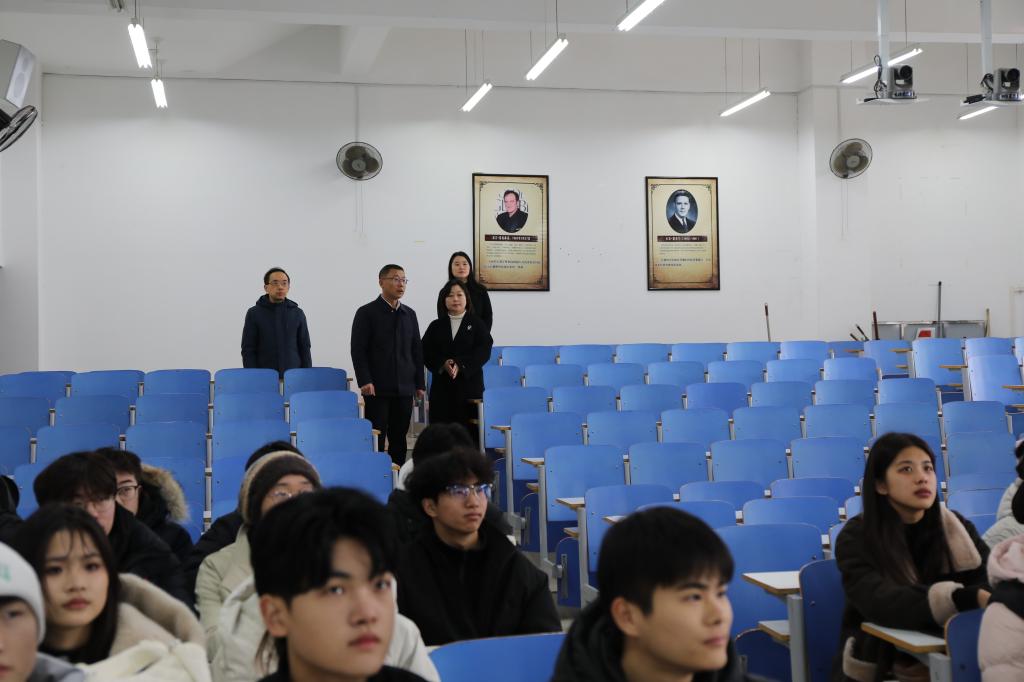 2月17日新学期开学第一天,姚新春书记带领学院领导班子深入社科楼、教五楼学生课堂和实验室,进行随堂听评课,检查新学期课堂教学和实验室安全工作。