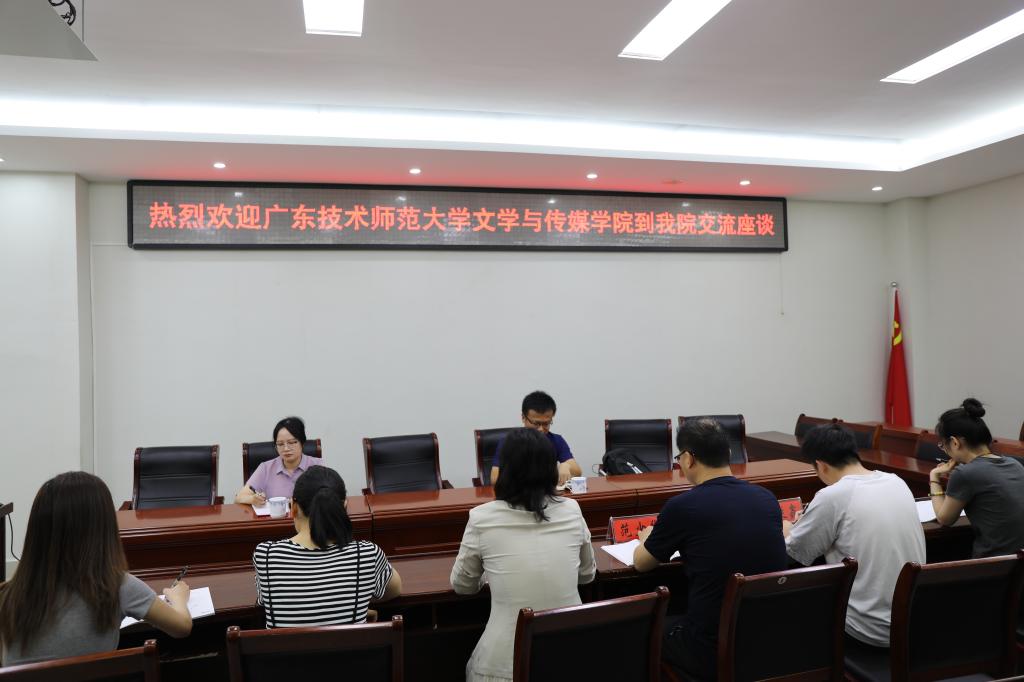 5月22日上午,广东技术师范大学文学与澳门十大信誉网赌大全项裕荣院长、林琳副院长来十大信誉网赌交流座谈。澳门十大信誉网赌大全副院长田华、实践教学中心主任范少华、广播电视系主任张霞及教学办相关人员参加座谈。