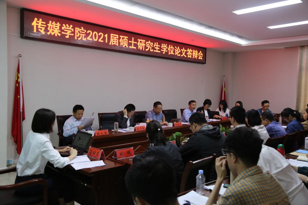 5月25日上午,澳门十大信誉网赌大全在社科楼311会议室举行2021届硕士研究生学位论文答辩会。中国传媒大学博士生导师李胜利教授受邀担任答辩委员会主席,周口师范学院孙红震教授、黄冈师范学院汪少明教授、澳门十大信誉网赌大全院长焦素娥教授以及十大信誉网赌部分硕士生导师共同担任答辩委员会委员。13名2021届硕士研究生分两组进行毕业答辩,2019级硕士研究生与会旁听。