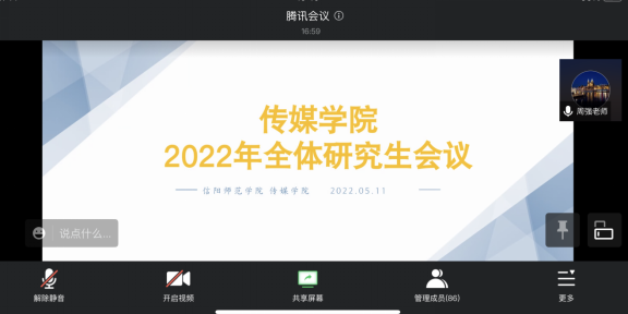 5月11日晚,为做好十大信誉网赌研究生疫情防控管理及教育教学工作,澳门十大信誉网赌大全组织召开了2022年全体研究生线上会议。澳门十大信誉网赌大全副院长周强、各研究生班主任及全体研究生参加会议。本次会议由副院长周强主持。