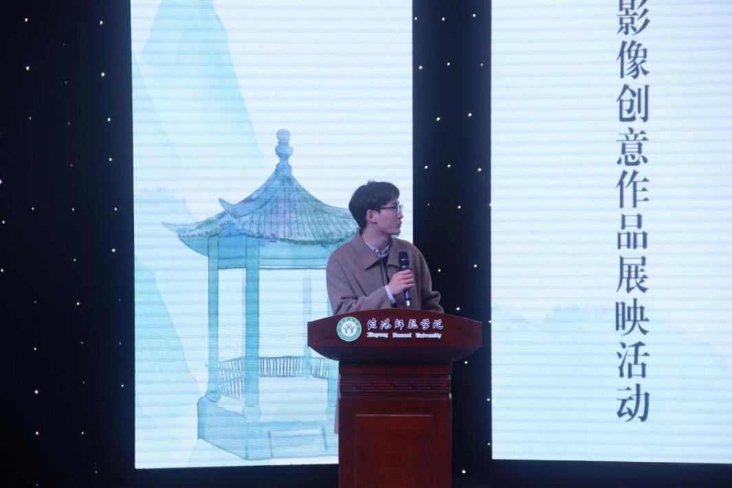 最后,研究生处处长沈文慧对获奖的同学们表示祝贺,对此次活动展示的作品质量表示了高度认可,同时对大家未来的创作提出了新的期许。沈处长引用习近平总书记提出的“文艺精品的三个维度”,即“思想精深、艺术精湛、制作精良”寄语在座同学们,鼓励大家未来继续努力,创作出更多的“文艺精品”。活动现场流光溢彩,灯光绚丽变幻,各组精美、隽永的展映作品,给现场观众带来了一场视觉盛宴。最后,在热烈的掌声中,各位参赛选手与领导老师合影留念,本次活动完美落幕。