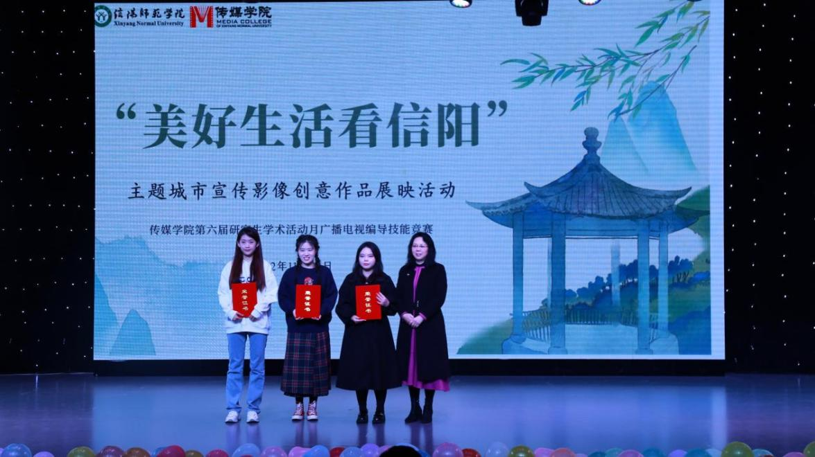 11月23日晚,澳门十大信誉网赌大全第六届研究生学术月广播电视编导技能竞赛暨“美好生活看信阳”主题城市宣传影像创意作品展播活动在社科楼演播厅举行。研究生处处长沈文慧、澳门十大信誉网赌大全党委书记胡波、澳门十大信誉网赌大全院长吕东亮出席活动,学院研究生导师及全体在校研究生、部分新媒体中心本科生参加活动,本次活动在学校常态化疫情防控管理条件下有序开展。