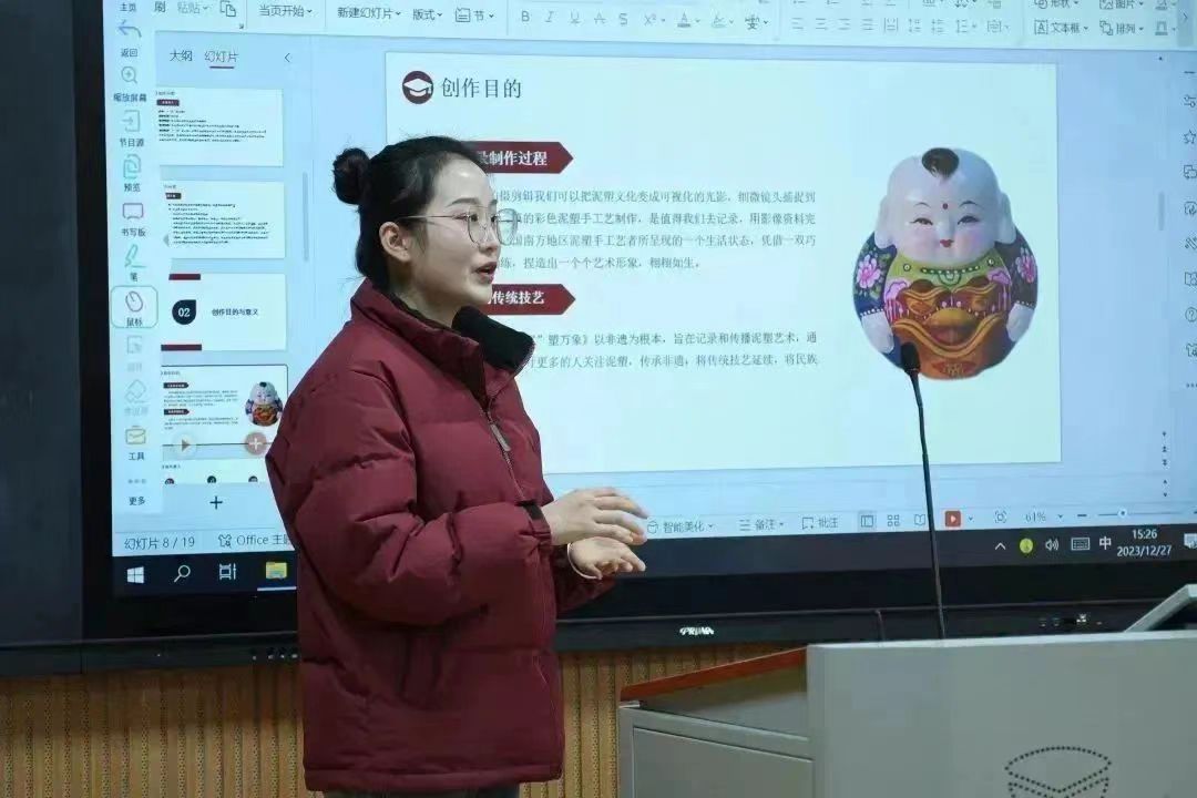 报告会上,22级研究生们分别从各自选题的背景、创作内容、创作方案、作品与论文选题的相关性以及拍摄的重难点来进行阐述。同学们依次上台表达自己的创意,有同学把选题聚焦于小众的“奇石”收藏群体,把小众的爱好展现到大众面前;还有以自己一家三代人为拍摄主题,把茶农的生活状态搬上帷幕,致力于宣传茶文化;值得一提的是,在本次开题报告会中,民生领域的研究也成为了一个全新方向。