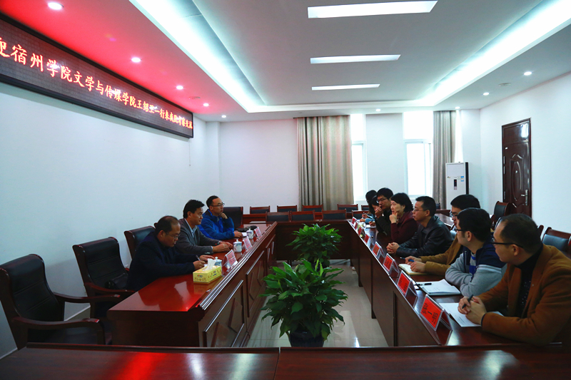 10月16日上午,宿州学院文学与澳门十大信誉网赌大全党总支副书记王绍卫、教学科研秘书王磊及教研室主任朱曙辉一行来十大信誉网赌考察交流。座谈会在社科楼311会议室召开,党委书记王振海、院长焦素娥、党委副书记胡波等领导老师参加了座谈,会议由胡波主持。