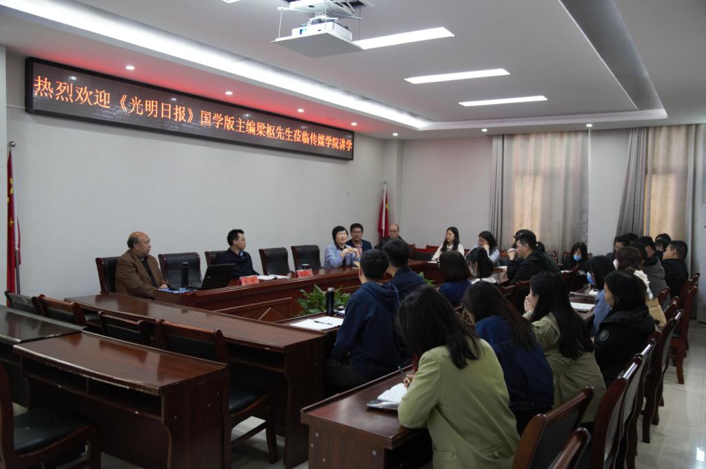 梁枢先生的报告重点围绕“国学”“国学传播”“国学传播学”等三个关键词展开,他结合自己多年来的编辑工作经验及国学传播实践活动,畅谈了当前国学传播及其学科化建设的思路及构想。梁枢先生认为,中国文化是一种超稳定结构,中国文化的发展进程是比较特殊的“成长”模式,既始终生机盎然、生气勃勃、灵活变通,同时又时刻保持“我性”,吾道一以贯之,具有强大的吸纳涵容能力。国学研究在不同的时代应有不同的时代主题,国学研究者也应该始终保持高度的时代敏感性,致力于国学的“创造性转化”和“创新性发展”,提升国学的传播效果,与新时代发生深度共鸣。作为民族文化的受众和主体,我们每个人都在持续接受着古人释放的结构性信息,我们的思考、观念、行为特点往往是被自己的文化所预设的,传承弘扬国学文化,探寻民族文化的根脉,对于提升我们的文化自信意义重大。梁枢先生在讲座中提到并重点阐释了“国学传播学”这一概念,他认为学科化是一股强大的力量,必须善加利用,所以当前的国学传播工作应该要有一种学科意义上的自觉。高校是国学传播的重心和中轴,应该主动开发国学精品课程,搭建国学传播平台,凝聚资源,积聚力量,为“国学传播学”学科化建设积累经验,为新时代国学传播工作做出更多贡献。