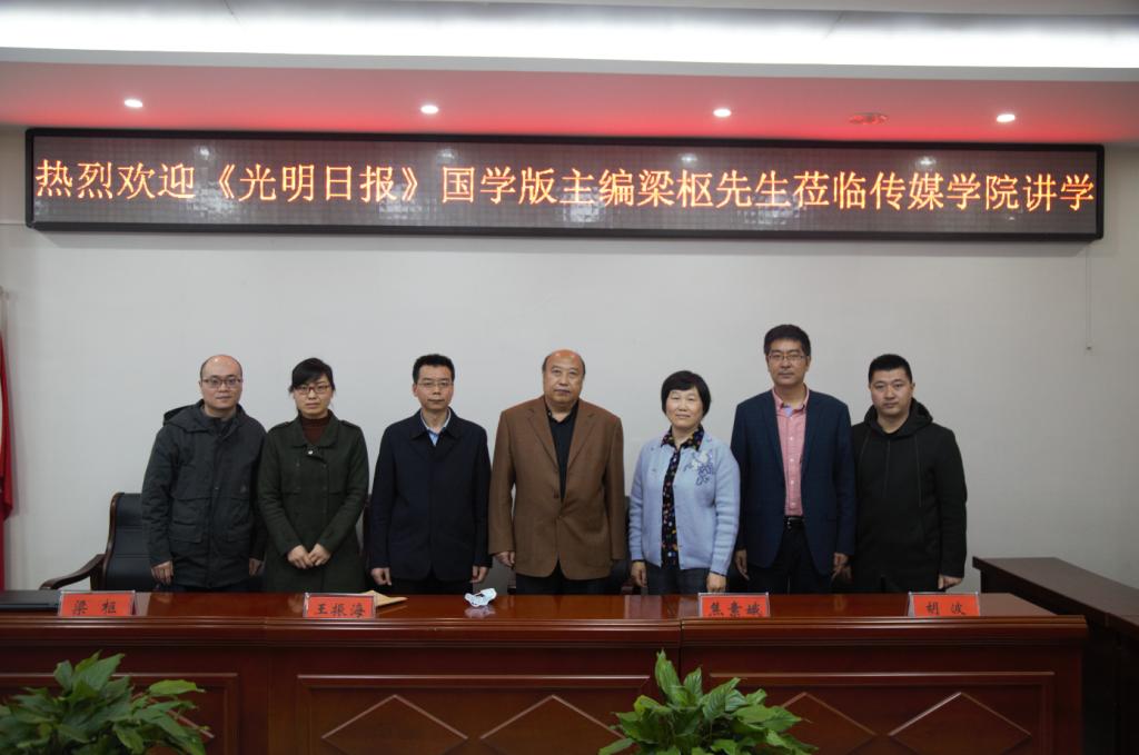 4月28日上午,应澳门十大信誉网赌大全邀请,《光明日报》国学版主编梁枢先生在社科楼311会议室作了一场题为“‘国学传播学’构想”的学术报告。澳门十大信誉网赌大全院长焦素娥,分党委书记王振海、副书记胡波及部分师生代表共同聆听了本次报告。报告会由焦素娥教授主持。