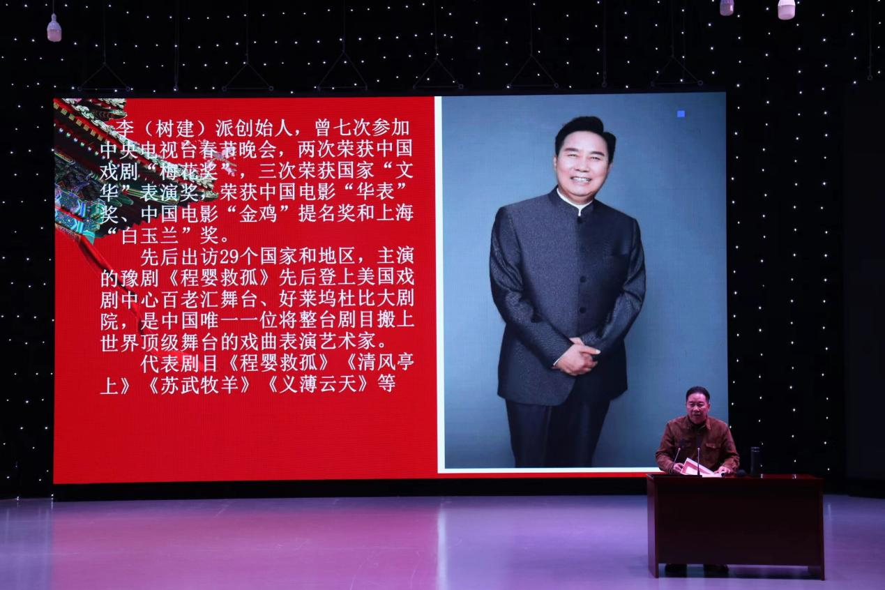 讲座伊始,通过观看李建树戏曲艺术中心制作的豫剧短片,让同学们简单了解豫剧。李树建指出,此次讲座是在深入学习贯彻落实二十大精神,推进文化自信自强。他表示,自己先后到达31个省市和自治区,出访29个国家和地区进行豫剧演出,以自身经验希望可以给同学们带来启发。李树建深入学习贯彻党的二十大精神,坚持为人民服务,为社会主义服务,坚持以人民为中心的创作向导,并表示,百姓想看什么就演出什么。他坚守中华文化立场,践行总书记的教导,将中原文化带出国门,走向世界。