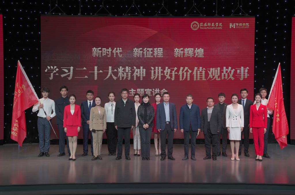 此次主题宣讲会以“新时代、新征程、新辉煌”为主线,将学习党的二十大精神与讲好价值观故事紧密结合起来,围绕党的二十大报告中指出的“以社会主义核心价值观为引领,发展社会主义先进文化,弘扬革命文化,传承中华优秀传统文化”,坚持创造性转化、创新性发展,积极利用好大别山红色资源,把革命英雄、道德模范、师德楷模、身边榜样的事迹编写成一个个感人至深的故事,把党的二十大精神的深刻内涵生动化,把社会主义核心价值观的深奥道理形象化,达到“春风化雨、成风化人”的育人效果。