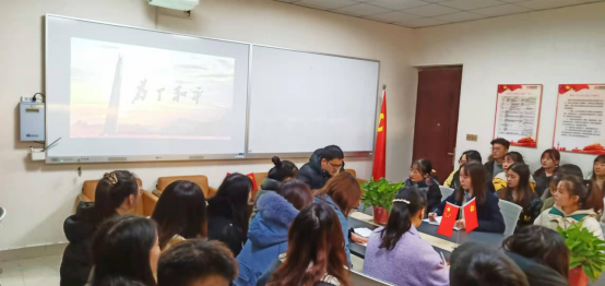 为深入贯彻落实习近平总书记在纪念中国人民志愿军抗美援朝出国作战70周年大会上的重要讲话精神,深入开展“四史”学习教育,大力弘扬伟大的抗美援朝精神,加强新时代爱国主义教育,教育引导广大师生厚植爱国主义情怀。12月1日,信阳师范学院澳门十大信誉网赌大全学生第三党支部由支部书记井忠勇带领支部全体学生党员共42人,在社科楼104组织举办《为了和平》纪录片观看活动。