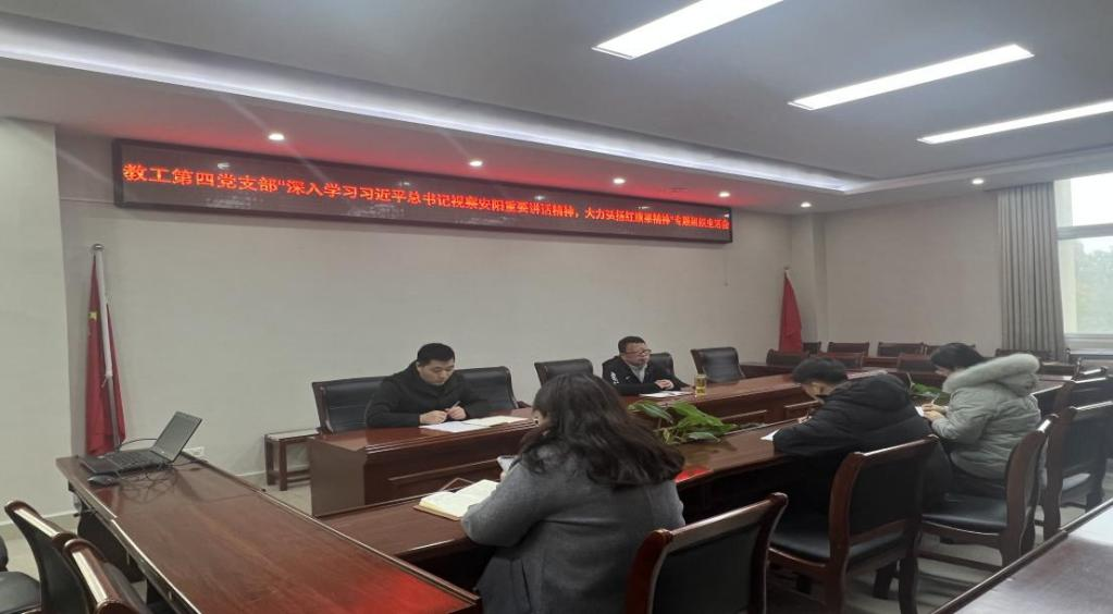 2022年11月22日下午,澳门十大信誉网赌大全教工第四党支部在社科楼311召开了“深入学习习近平总书记视察安阳重要讲话精神,大力弘扬红旗渠精神”专题组织生活会,会议由教工第四党支部书记段金龙同志主持,支部全体党员参加。