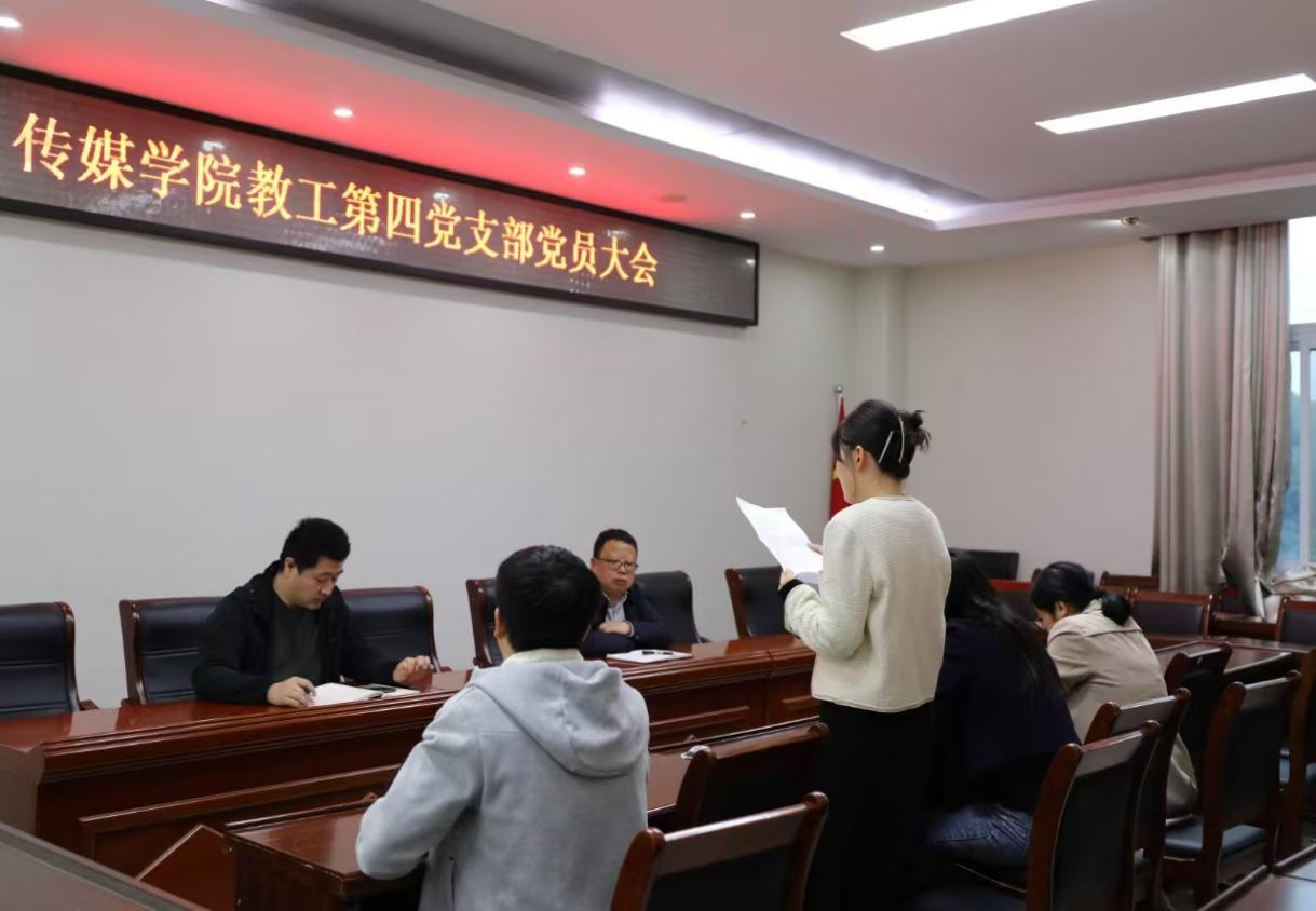 5月27日,澳门十大信誉网赌大全教工第四党支部在社科楼311会议室举行支部党员大会,会议由支部书记段金龙主持,7名正式党员参加,澳门十大信誉网赌大全吕东亮院长作为普通党员参加,会议主要讨论预备党员聂君伊同志的转正事宜。