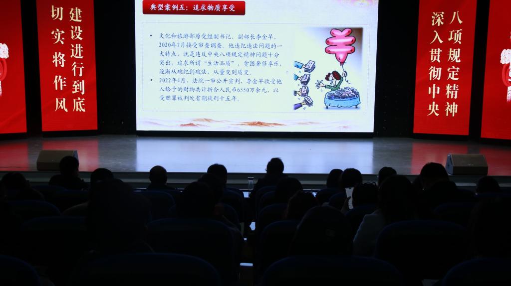 观看专家辅导视频。学院全体师生党员集中观看了中央党校(国家行政学院)公共管理教研部李军鹏教授《继续纠治享乐主义、奢靡之风,推进作风建设常态化长效化》辅导报告视频,报告中引用典型案例深入剖析违反中央八项规定精神的具体表现和危害,使师生党员进一步筑牢思想防线,在师德师风、学术诚信、服务师生中严于律己、以身作则。