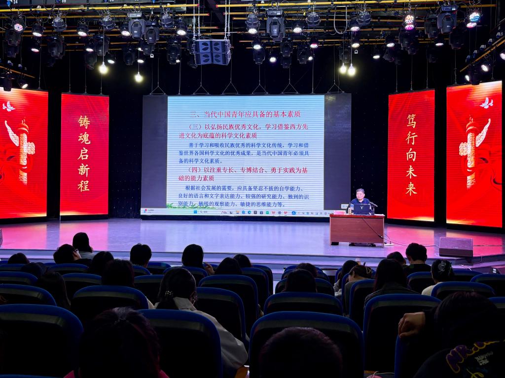 齐城研究员以新时代中国发展的历史方位为切入点,系统回顾了改革开放四十多年来中国社会各领域发生的深刻变迁,阐释了我们当前所处的“大有可为的历史机遇期”。他结合全球化、信息化背景下青年面临的思想观念冲突,深入剖析了当代青年学生的思想现状与认知特点。最后,齐城围绕思想政治素质、道德修养、科学文化素养、综合能力以及身心健康等多个维度,为青年学生勾勒出一幅清晰的“素质图谱”,帮助大家明确成长方向、增强发展动力。王超在主持报告会时勉励青年学子把握时代机遇,踔厉奋发,在实现民族复兴的征程中谱写精彩篇章。