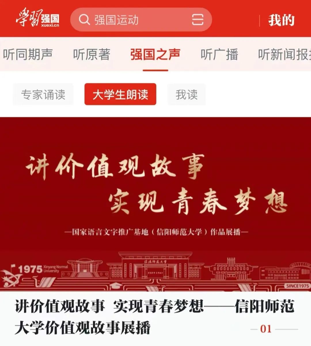 近日,国家语言文字推广基地(澳门信誉最好十大平台)组织澳门十大信誉网赌大全播音与主持艺术专业学生创作的“讲价值观故事,实现青春梦想”系列朗读作品成功入选“中宣部·学习强国”平台“大学生朗读”频道。本次活动,由澳门十大信誉网赌大全播音与主持艺术专业的刘子妍、沈泉宇、袁安妮、臧宜豪、王梓伊、吴姝彤等六名同学播读录制,由澳门十大信誉网赌大全陈长旭、李诗雨老师共同指导。