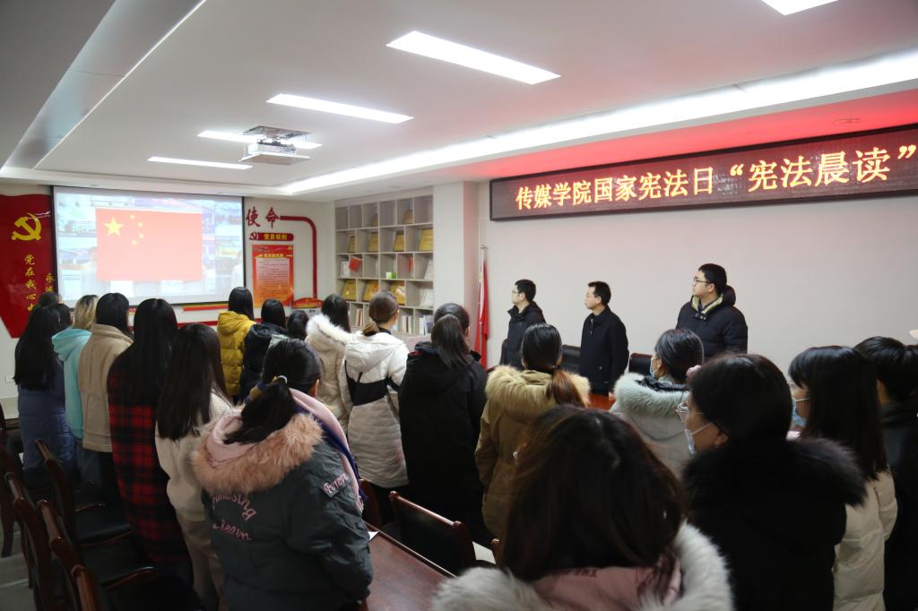 12月4日上午,澳门十大信誉网赌大全师生在社科楼311会议室组织收看教育部国家宪法日"宪法晨读"网络直播活动。党委书记王振海主持会议,全体辅导员及澳门十大信誉网赌大全部分师生共同观看此次直播并参加宪法诵读活动。