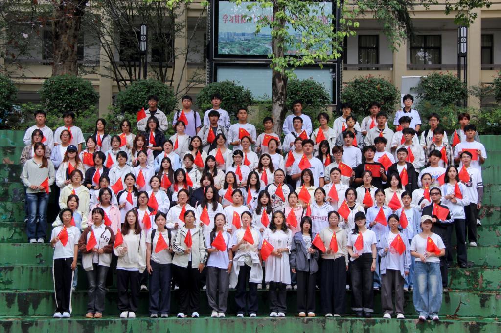 伴随着校歌《托起民族的希望》的激昂旋律,活动步入高潮。2025级广播电视编导班李科伟领誓,全体学子高举右拳,“为共产主义事业而奋斗”的誓言响彻广场。字字铿锵间,既是对入团初心的郑重重申,更是对“传承抗战精神、续写时代华章”的庄严承诺。