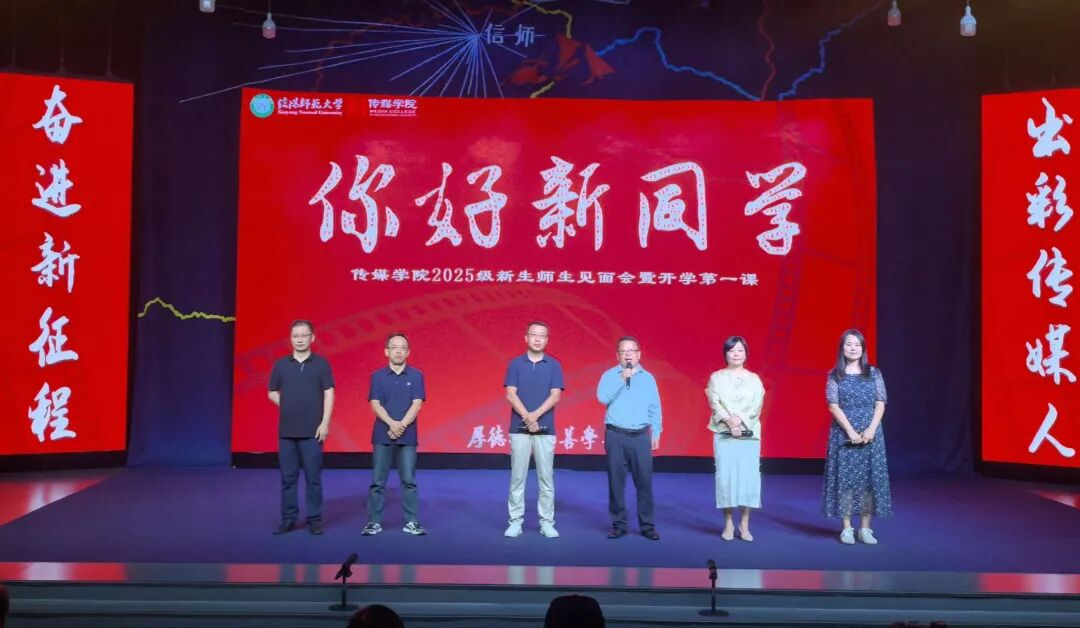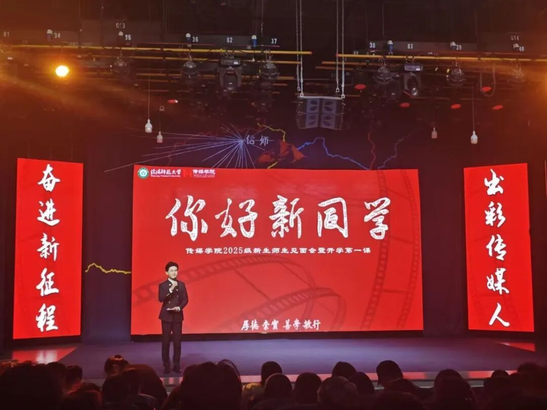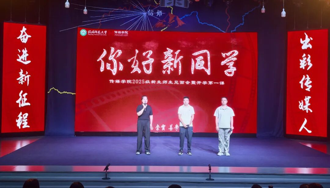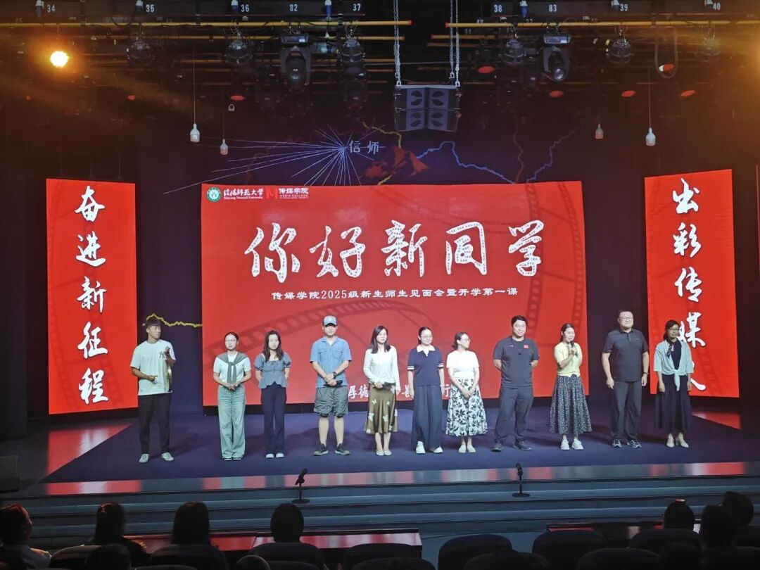 9月16日下午,澳门十大信誉网赌大全2025级新生师生见面会暨开学第一课在社科楼演播厅举行。学院领导班子成员、全体教职工、2025级全体学生参加。见面会由23级播音与主持艺术专业秦硕硕同学主持。