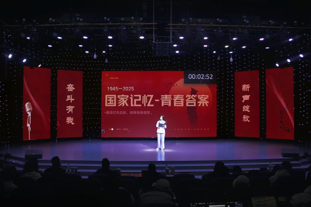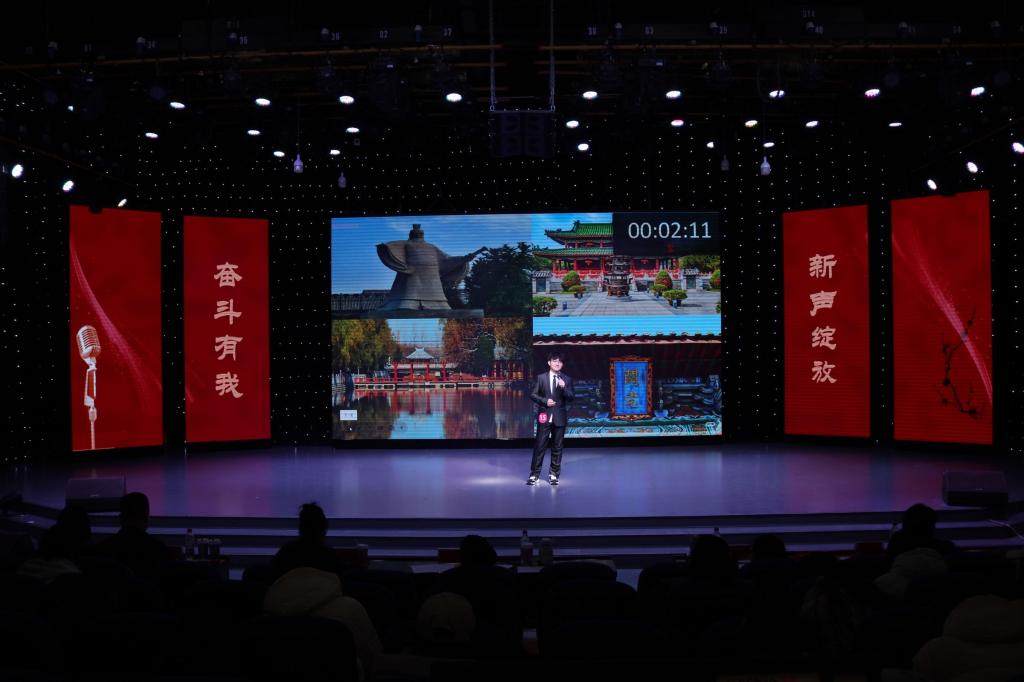 首先登台的是非专业组选手,他们以创意为笔,书写热爱篇章。自备稿件朗诵时,文学院马林青咏诵家国情怀,商学院邢诗宜诠释大别山精神,教育科学学院李昱霏借文字传递成长力量。自备主持环节,医学院董兵航带来的《大美许昌》,带领观众“云游”许昌,教育科学学院姜可欣在主持《历史运动会》节目中把投壶、蹴鞠等传统运动讲得妙趣横生。多元表达让赛场新意盎然。