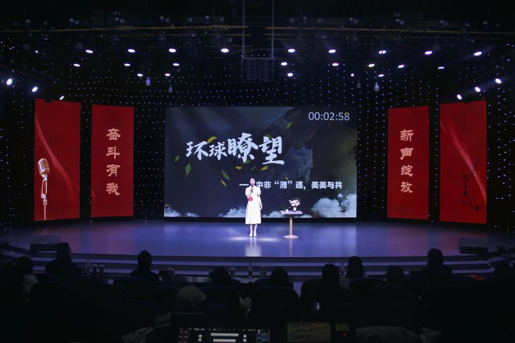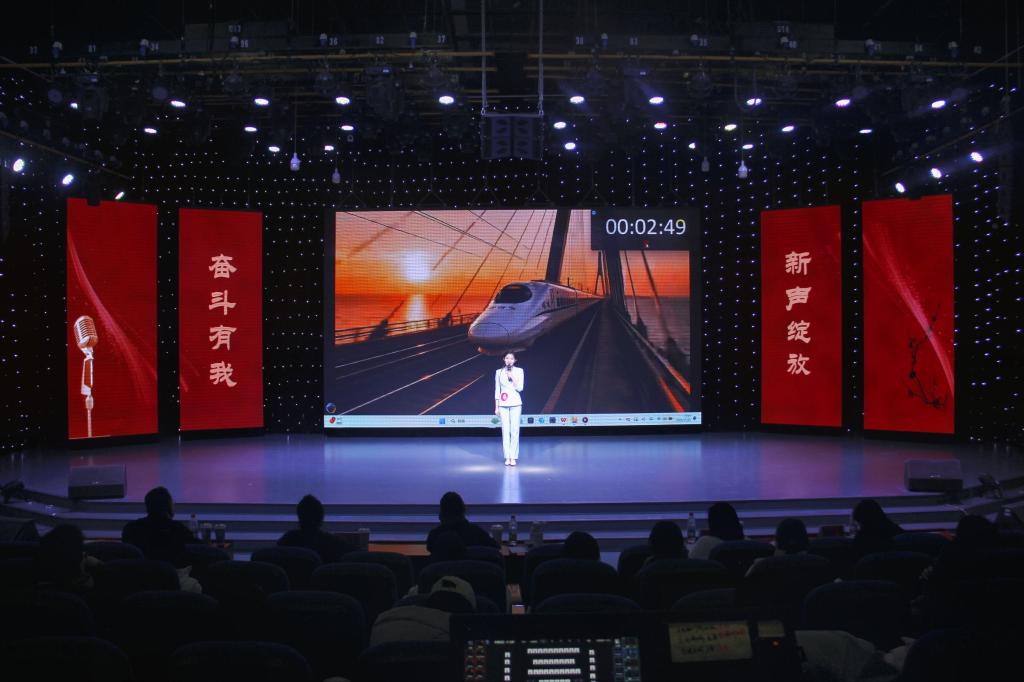 专业组选手以专业素养掌控全场。刘子妍聚焦“一带一路”传递中国温度,张钟文借中国高铁彰显大国实力,朱梦真讲述班爱花的“沉默”与“荣耀”。现场即兴评述环节中,选手们围绕学校大事、校园活动、时事热点等临机应变,完美呈现语言的魅力与思想的深邃,将氛围推向高潮。赛事进行中,校园歌手王雨瑶和李奕霏献唱《光年之外》,为赛场增添亮色。