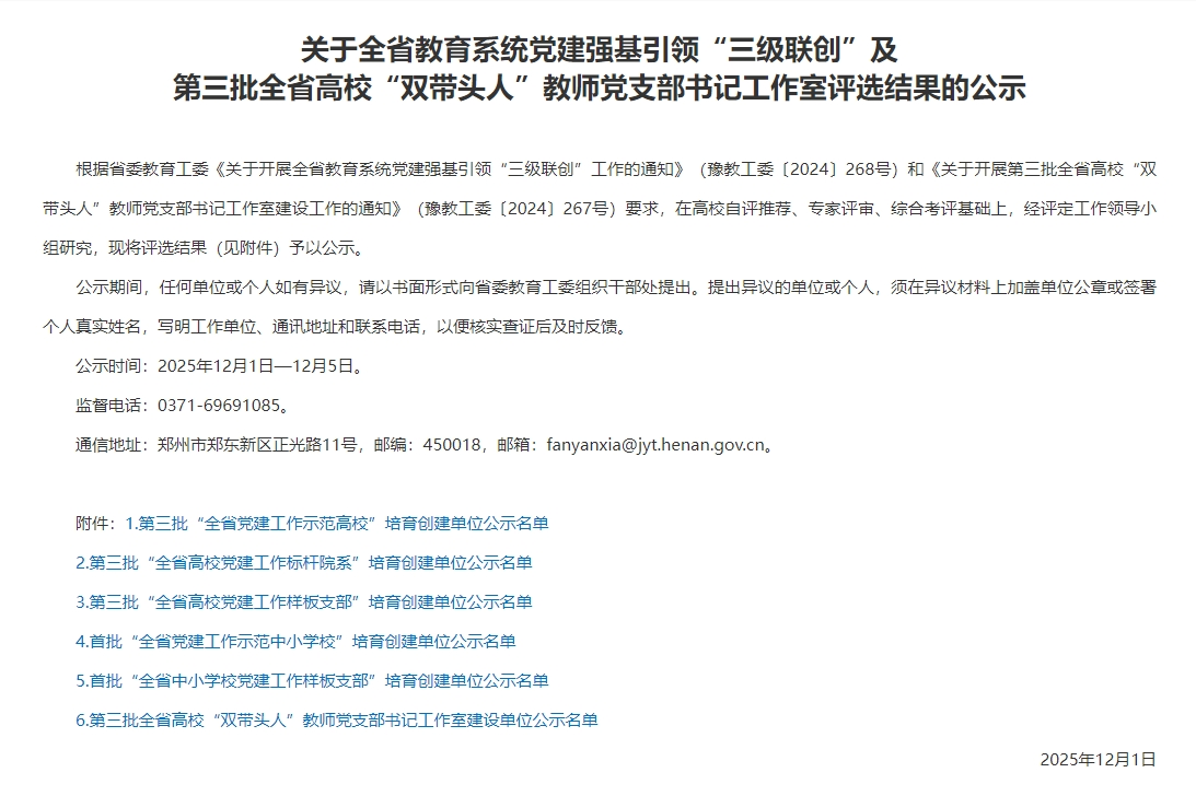 12月1日,全省教育系统党建强基引领“三级联创”及第三批全省高校“双带头人”教师党支部书记工作室评选结果公示,我院教工第四党支部经过层层选拔,成功入选全省高校“双带头人”教师党支部书记工作室建设单位,是十大信誉网赌继2024年入选“全国党建工作样板支部”培育创建单位、教育部首批“双带头人”教师党支部书记“强国行专项活动”之后党建工作的又一次突破。