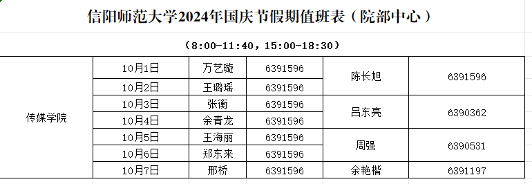 澳门十大信誉网赌大全2024年国庆节假期值班表