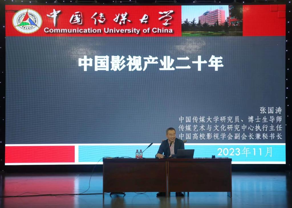 张国涛指出,此次讲座是在学习贯彻落实“习近平文化思想”的背景下开展的。他提出,影视产业发展作为文化强国的重要组成部分,我们要深入学习“习近平文化思想”中的“两个结合”和“文化强国”理论。他以2000-2022中国电影产业、中国电视剧产业、中国电视动画产业和中国纪录片产业的发展数据和基本走势为论据,提出了中国的经济改革坚持“对内放开”和“对外开放”理念。这在短时间内为影视产业发展注入了新鲜活力,创造出举世瞩目的伟大奇迹。