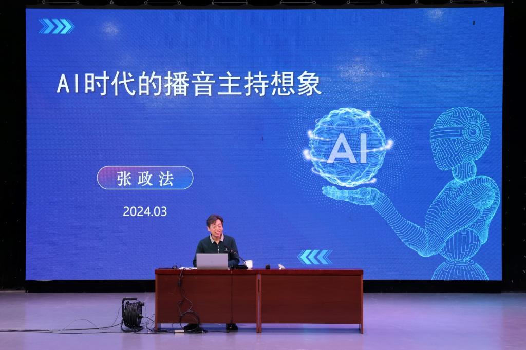 2024年3月29日上午,中国传媒大学教授、中国医药卫生文化协会疫苗与健康分会副会长张政法受邀为河南省人文社科重点研究基地中原戏剧影视文化研究中心师生在澳门信誉最好十大平台社科楼演播厅开展“AI时代的播音主持想象”专题讲座。讲座由澳门十大信誉网赌大全办公室主任陈长旭主持,2021级和2023级播音与主持专业全体学生及部分教师参加了此次讲座。