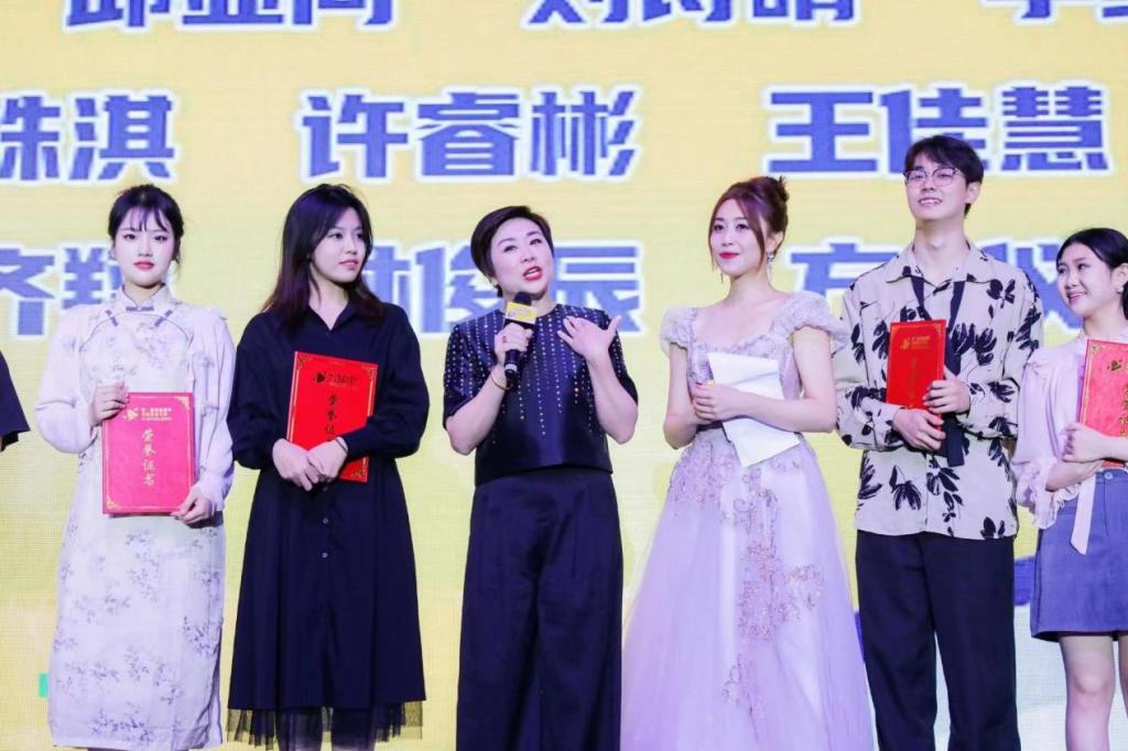 由中国电视艺术家协会指导,厦门市翔安区人民政府、厦门外图集团有限公司共同主办的第一届海峡两岸动漫配音大赛自7月启动以来,受到两岸青年积极参与和热烈反响。大赛共收到来自两岸多所高校、配音社团和声音工作室选送的2000多部参赛作品,经过广泛征稿和初赛,大赛共有160组选手入围决赛,最终评选出一等奖1组、奶龙专项奖1组、二等奖4组、三等奖6组、最佳创意奖24组、最具潜力奖24组、优秀奖100组、优秀指导教师50位、最佳组织单位50家。河南省人文社科重点研究基地中原戏剧影视文化研究中心学子在比赛中展现出了扎实的配音功底和有创意的配音表演,赢得了评委和观众的一致好评,两岸评委代表黄婉彬、陈美贞上台与选手们合影。